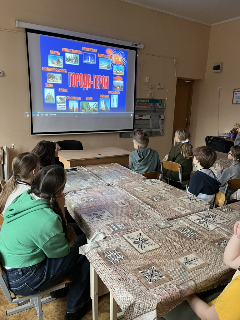 Ребята узнали о том, что в годы Великой Отечественной войны десятки, сотни городов стали местами ожесточенных сражений и массового героизма людей. Города-герои — почётное звание, которого удостоены 13 городов, прославившихся своей героической обороной во время Великой Отечественной войны 1941—1945. Девять из них находятся на территории Российской Федерации.
