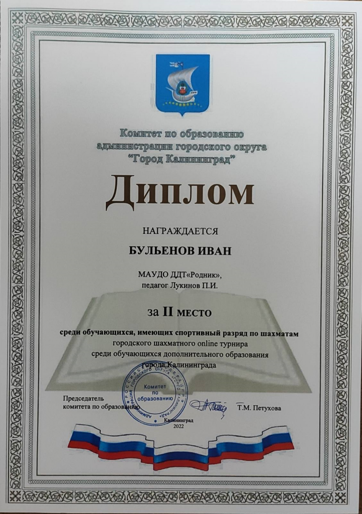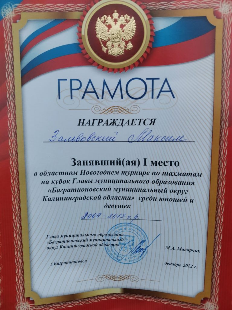 В конце декабря 2022 года прошли 2 шахматных турнира:городской турнир среди обучающихся дополнительного образования города Калининграда и областной новогодний турнир по шахматам на кубок Главы муниципального образования "Багратионовский муниципальный округ Калининградской области"