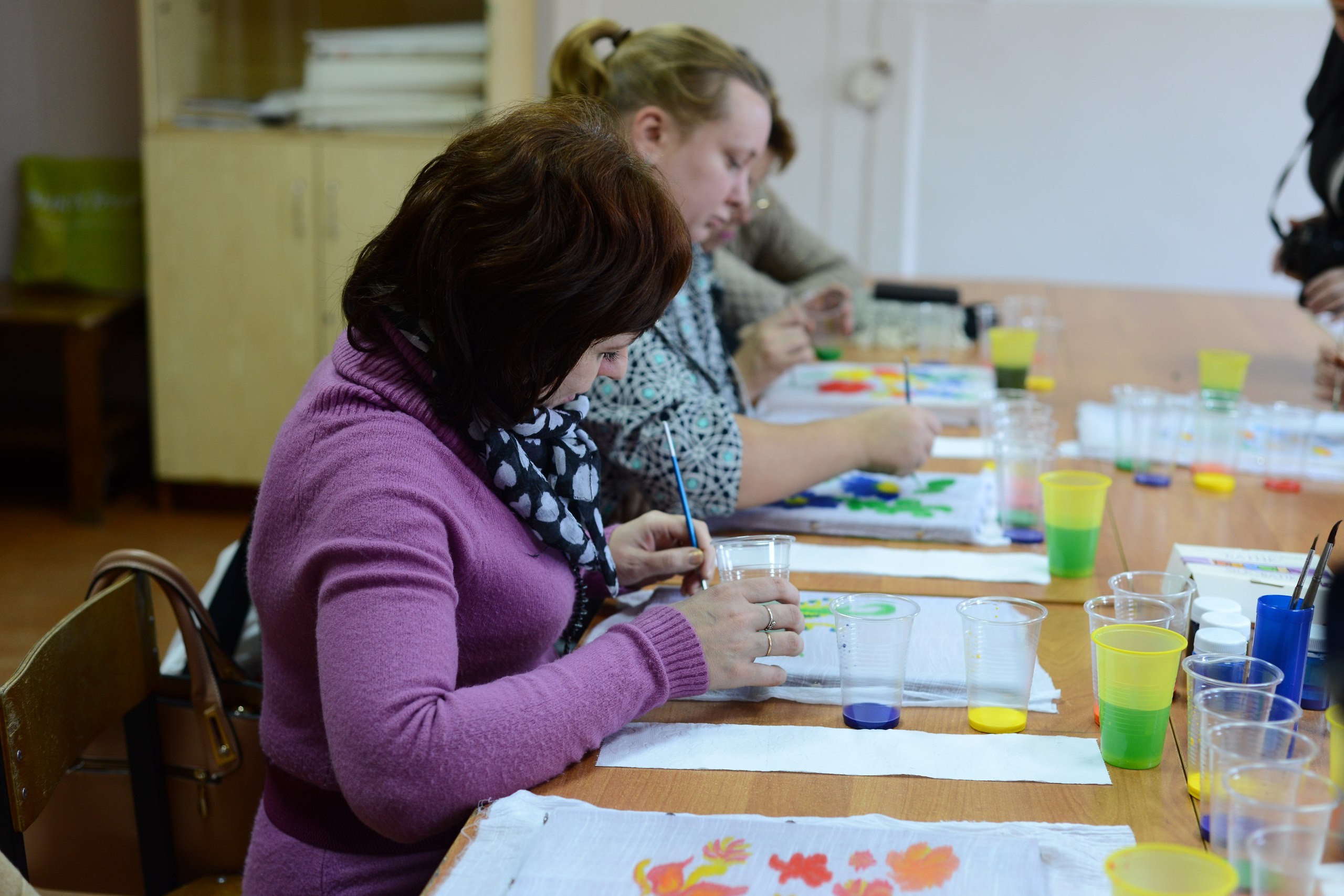 Для педагогов были проведены мастер-классы по темам: «Техника холодного батика», «Вышивка лентами», «Съемка классического портрета» и другие.