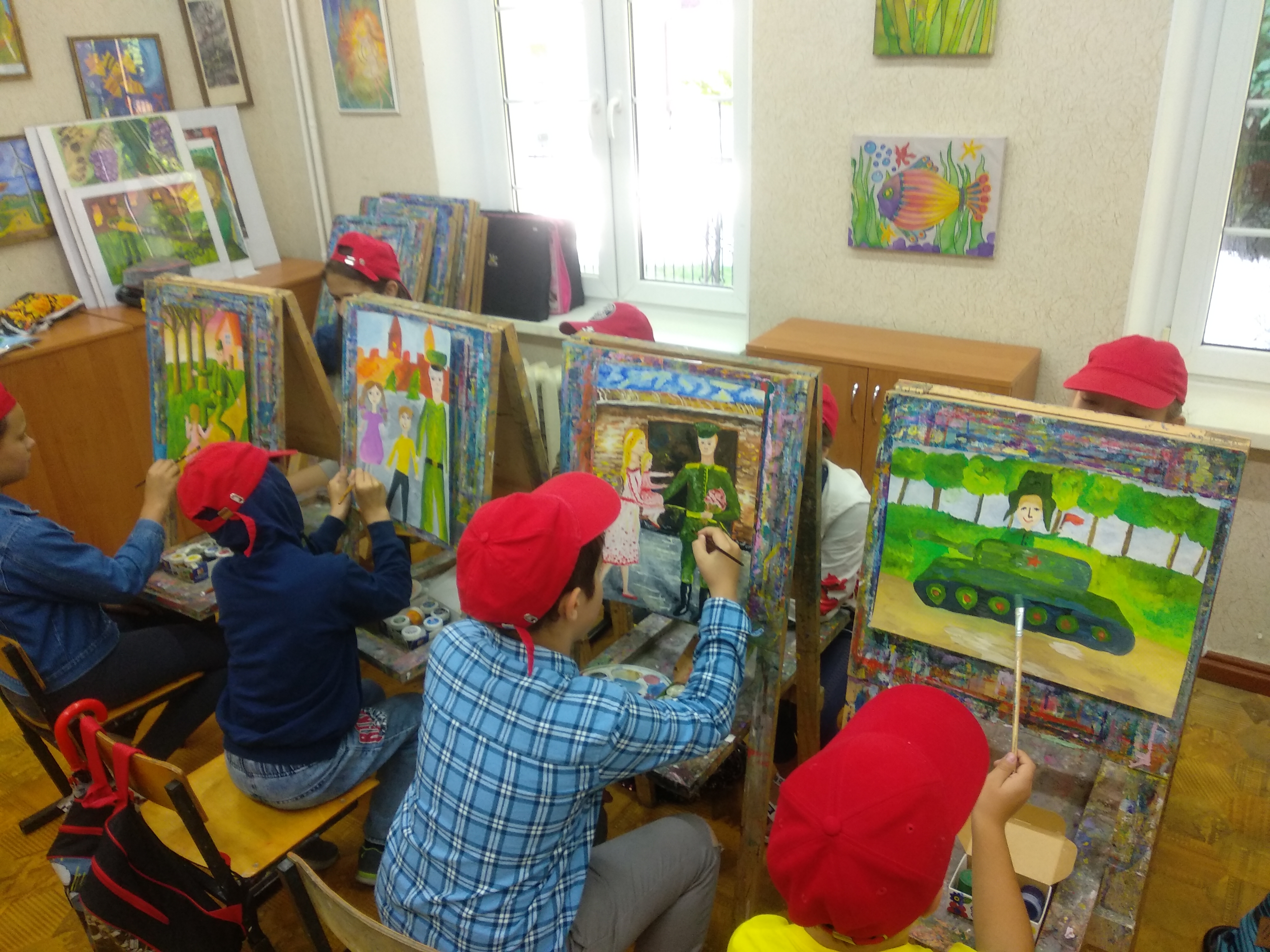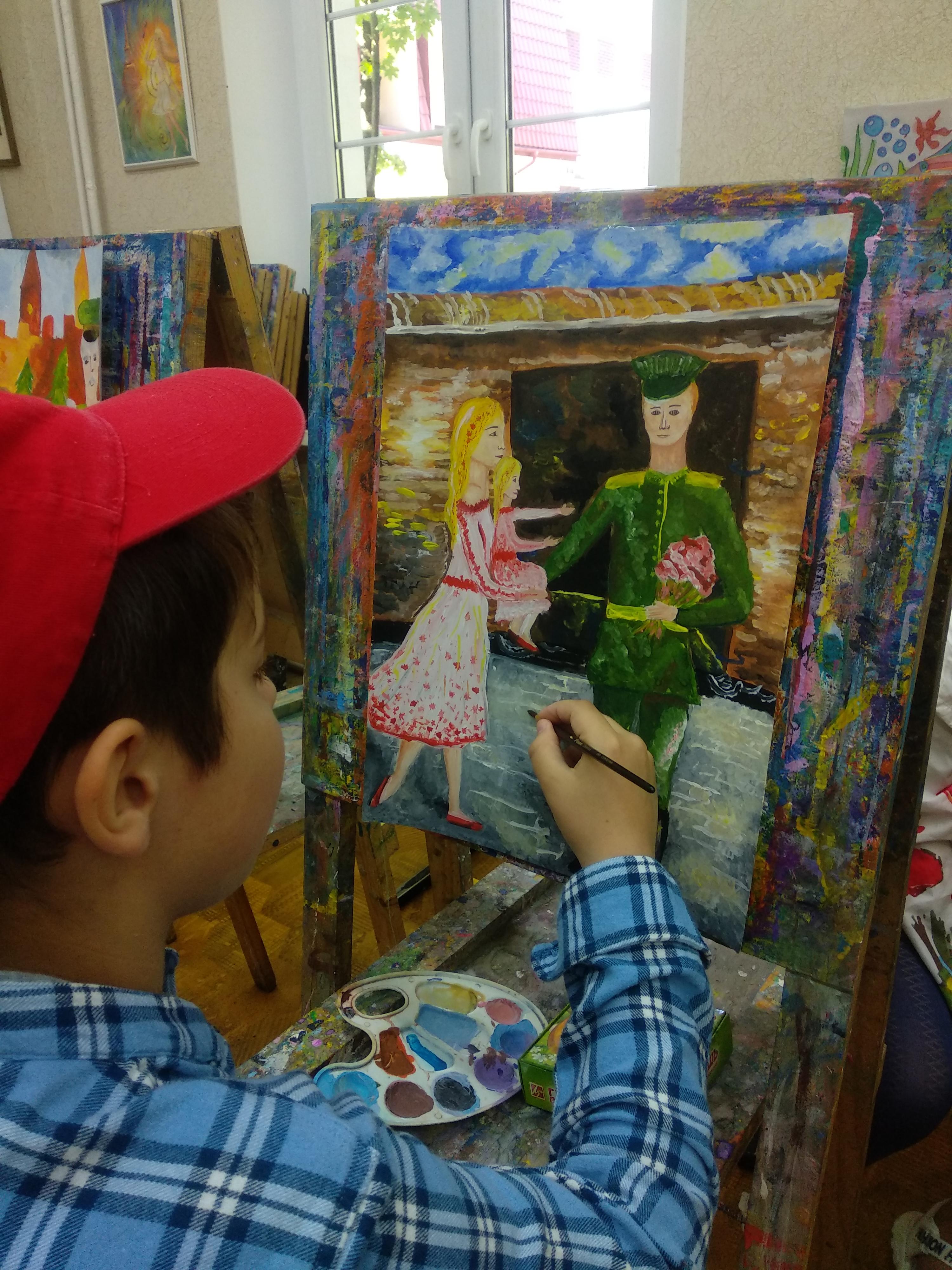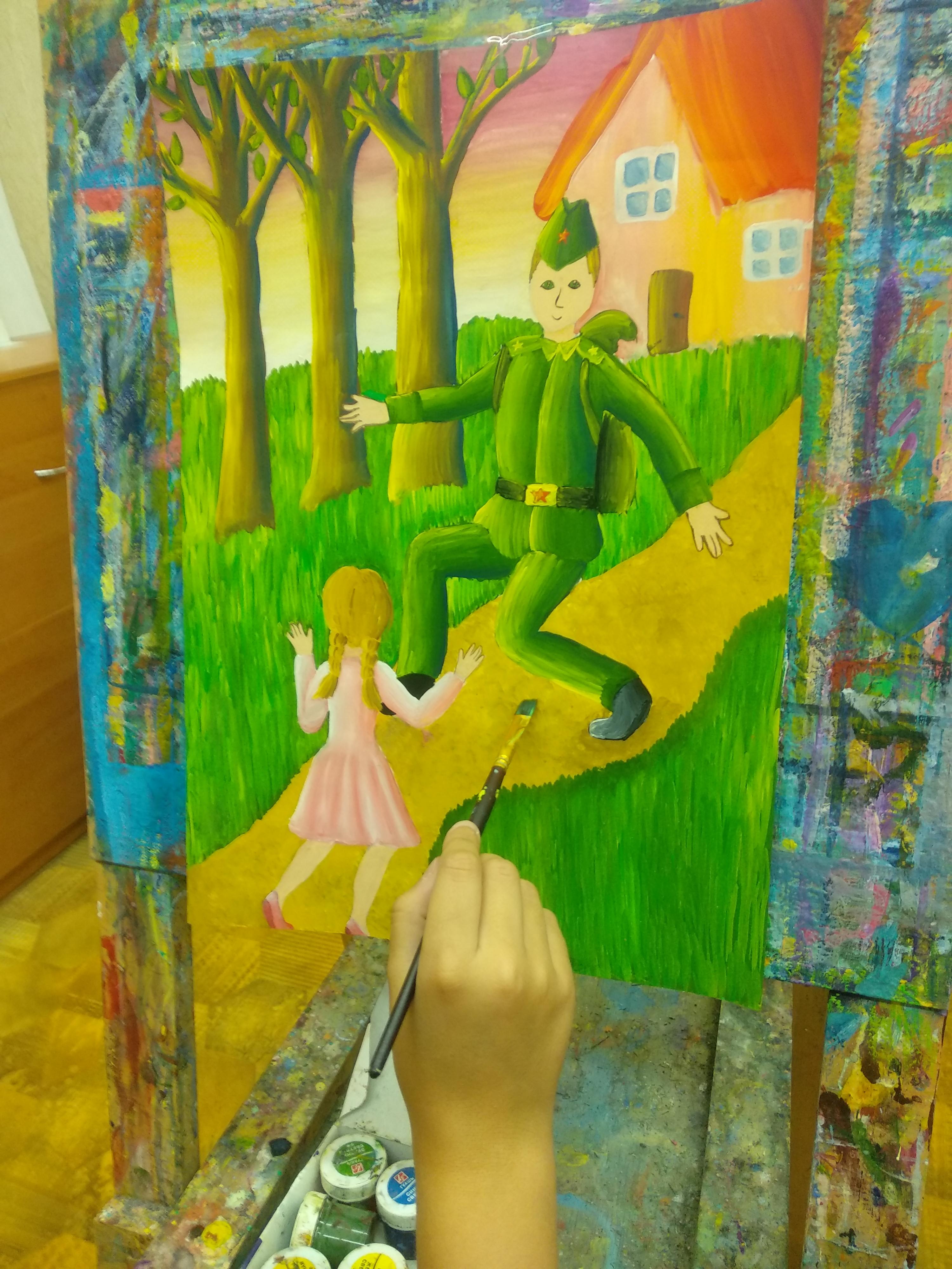 В летнем лагере мы не забываем о годовщине Великой Победы над врагом. Мы провели урок у памятника лейтенанту Катину. Николай Андрееевич Катин не дожил до Победы всего месяц. 7-го апреля 1945 года он погиб. В течение трех часов его рота отбивала атаки превосходящих сил противника. После того, как погибли все его подчиненные, продолжал вести бой. Когда у него кончились боеприпасы, подорвал себя противотанковой гранатой вместе с окружившими его врагами. Мы вернулись в "Родник" и нарисовали счастливых победителей, которые смогли вернуться домой! Низкий вам поклон, прадедушки и прабабушки, бабушки и дедушки, за наш теперешний отдых и спокойное, такое голубое, небо. Спасибо!