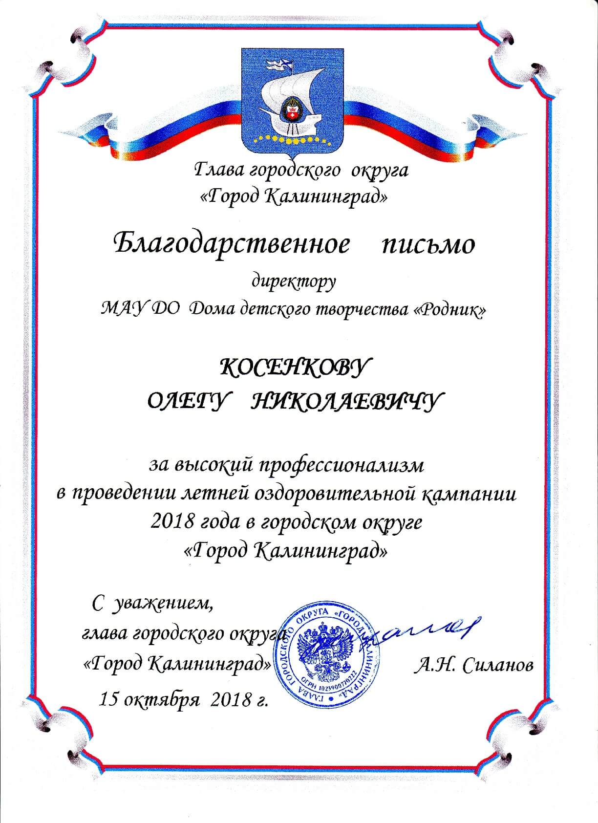 25 октября в администрации Калининграда под руководством главы города Алексея Силанова состоялось совещание, посвящённое итогам летней оздоровительной кампании-2018.