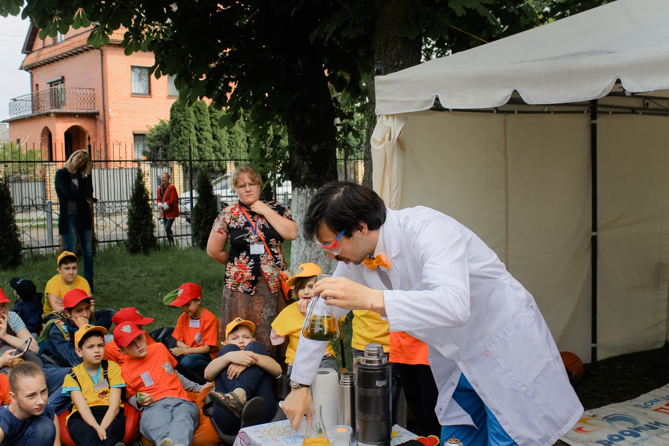 А вслед за официальной частью детей ожидало научное шоу от Профессора Открывашки. Никто не остался равнодушным!