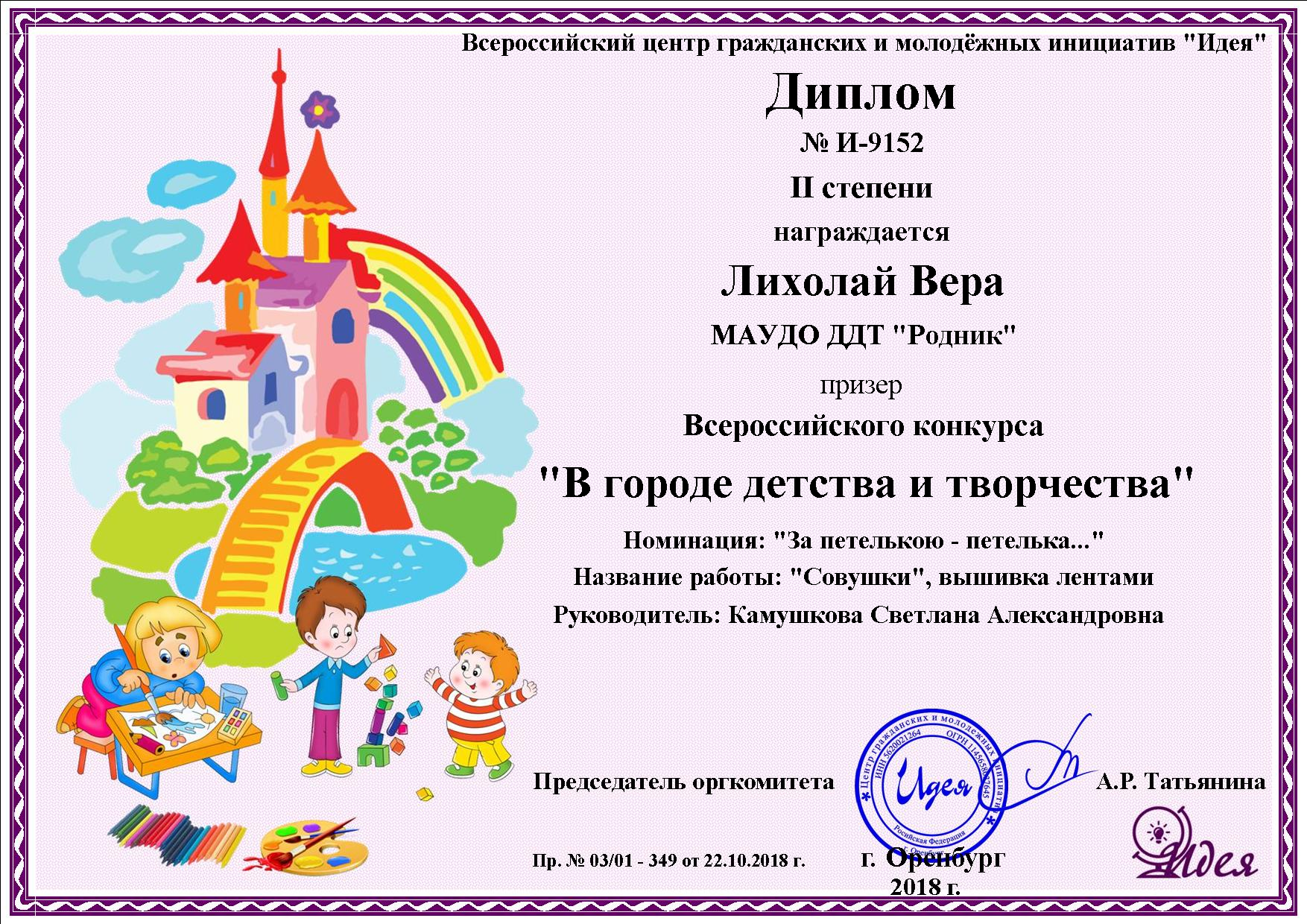 В конкурсе приняли участие ученицы творческого объединения «Волшебная нить» (1го года обучения) Лихолай Вера и Ульянова Таня. Юные рукодельницы представили на суд жюри работы в технике вышивка лентами (номинация «За петелькою петелька…») и лепка из глины (номинация «Это тесто не простое, это тесто расписное»). И хотя техники были разными, но вот темы работ совпали – совы.