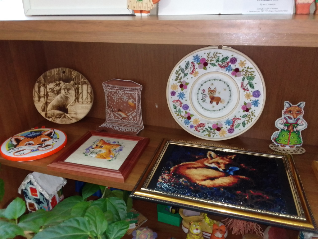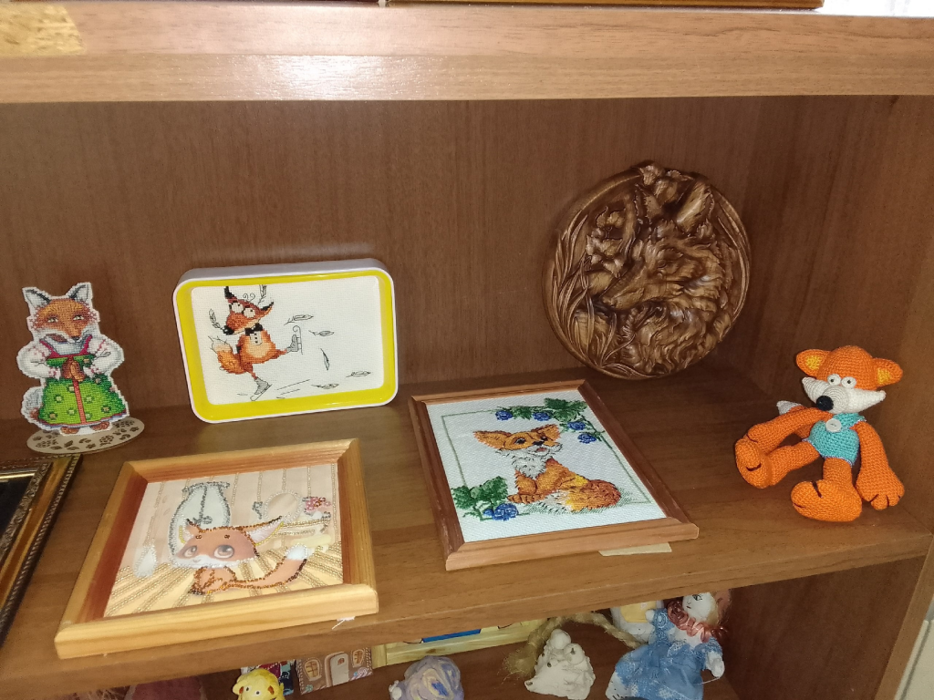 Были представлены вышивки, текстильные игрушки в разных техниках, иллюстрации. Среди экспонатов выставки, как работы созданные руками хозяйки коллекции, так и подарки ее друзей и коллег.